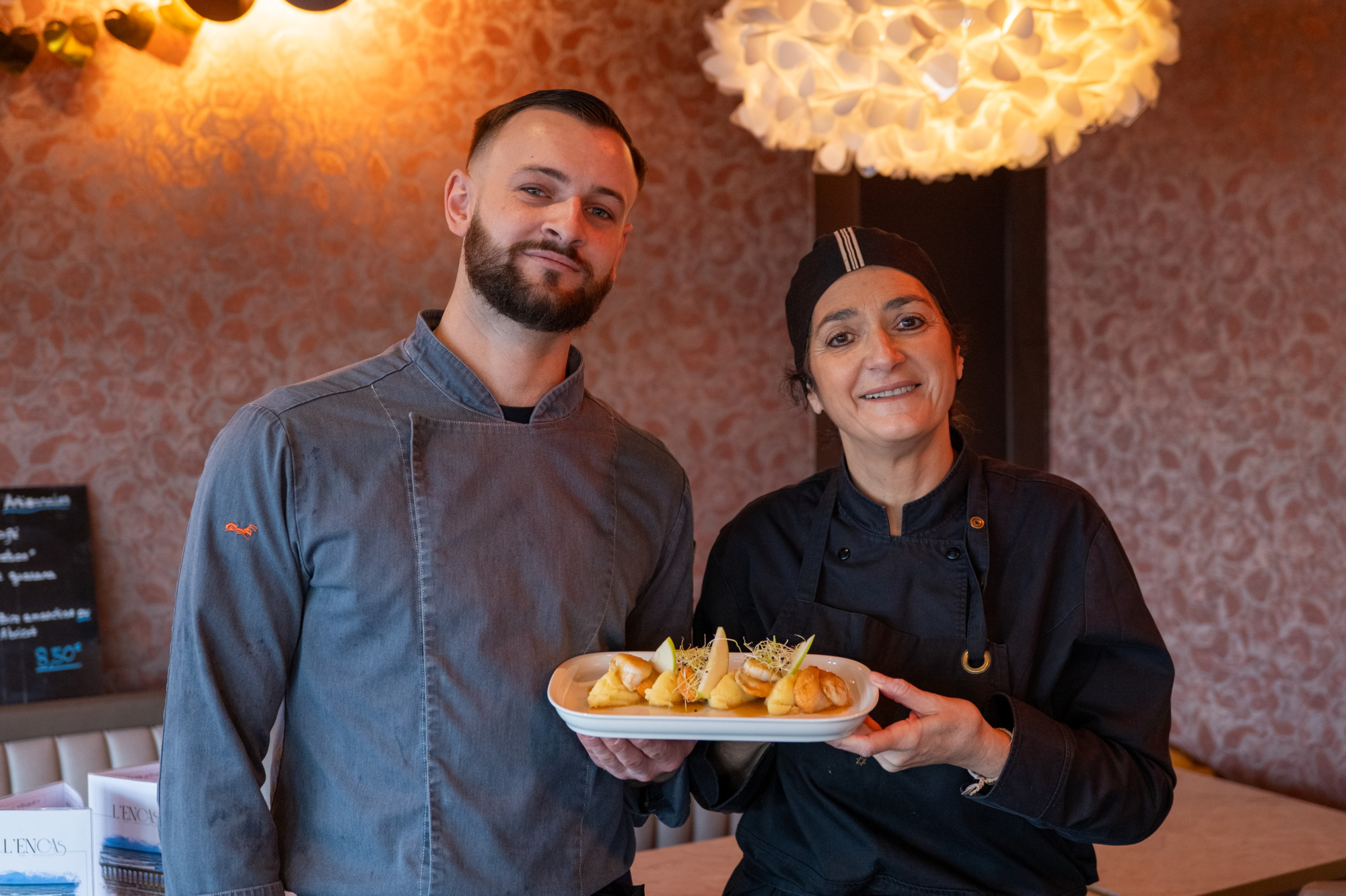 Fidèles à leur approche, Carole Galy et son collaborateur Valentin Regnault privilégient une mise en valeur simple et précise : la Saint‑Jacques est servie nature, relevée d’un poivre léger ou d’une pulpe fruitée, afin d’en préserver le goût pur, la texture nacrée et la finesse. En ce moment, ils proposent une assiette dédiée : « Noix de Saint‑Jacques de nos côtes fraîchement pêchées et pulpe pomme », où la simplicité du produit rencontre la précision du geste.